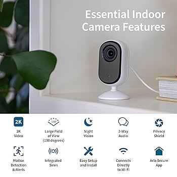 Keep an eye on what matters most with the Arlo Essential Indoor Camera (SKU: 2DP99AA). Designed for indoor security, it delivers 1080p HD video, two-way audio, and night vision. With a built-in privacy shield and motion detection alerts, it's perfect for monitoring your home or office with peace of mind.