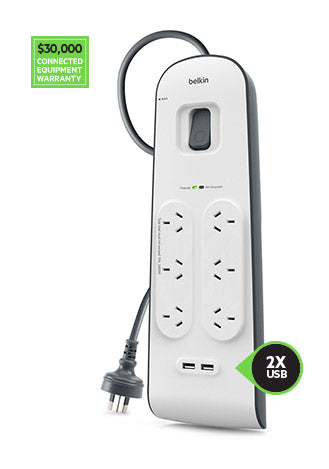 The Belkin 6-Outlet Surge Protection Strip with 2.4A Dual USB Charging (SKU: BSV604AF2M) offers premium power protection for your electronics and mobile devices. Featuring 6 surge-protected AC outlets and 2 USB ports, this power strip is ideal for home or office use. With a 2-meter heavy-duty power cord and 650 Joules of surge protection, it keeps your devices safe from power spikes while charging smartphones and tablets efficiently.