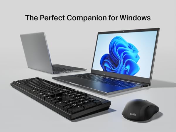 The BELKIN CONNECT Wireless Keyboard and Mouse Combo (SKU: BBZ010TT) offers seamless wireless connectivity, a full-sized keyboard with an international English layout, and a comfortable ambidextrous mouse—perfect for boosting productivity at home or in the office. En savoir plus