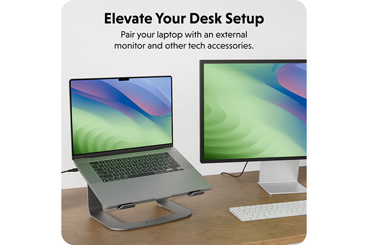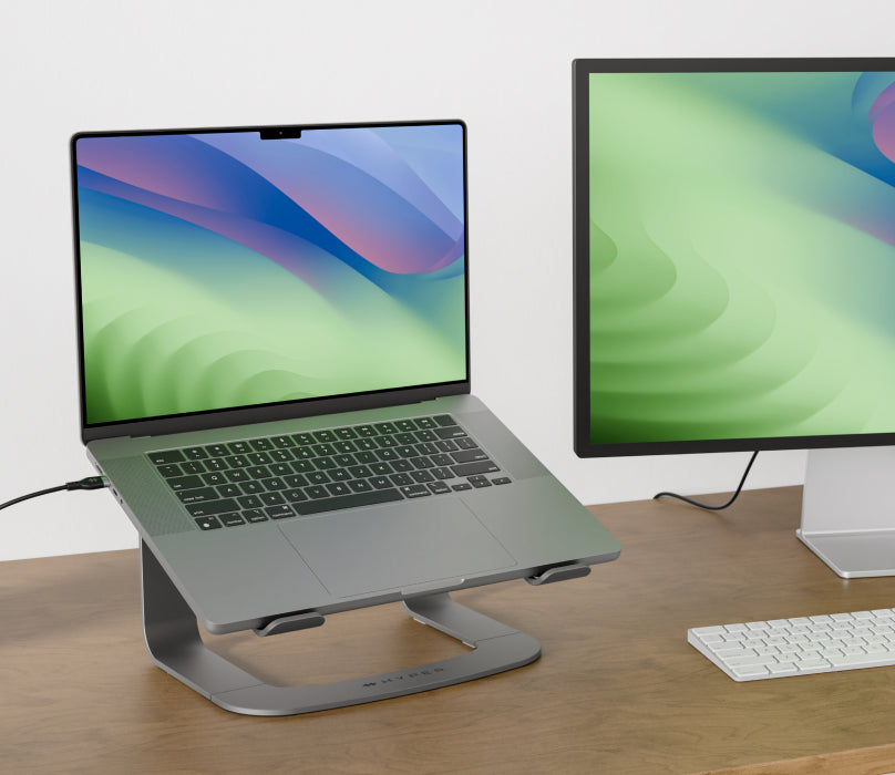 The Hyper HyperSpace Laptop Stand - Grey (SKU: HS1110GYGL) is a sleek, ergonomic solution designed to elevate your laptop for better posture, improved airflow, and enhanced productivity. Crafted from durable aluminum, it supports laptops up to 17 inches and features a foldable, lightweight design for easy portability—perfect for home, office, or on-the-go use.