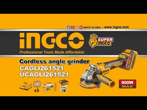 The INGCO CAGLI261521 Cordless Angle Grinder is a powerful and portable tool designed for cutting, grinding, and polishing. Powered by a 20V lithium-ion battery, it offers high performance with the convenience of cordless operation. Ideal for both DIY enthusiasts and professionals, it features a brushless motor, ergonomic design, and safety features for efficient and safe use.