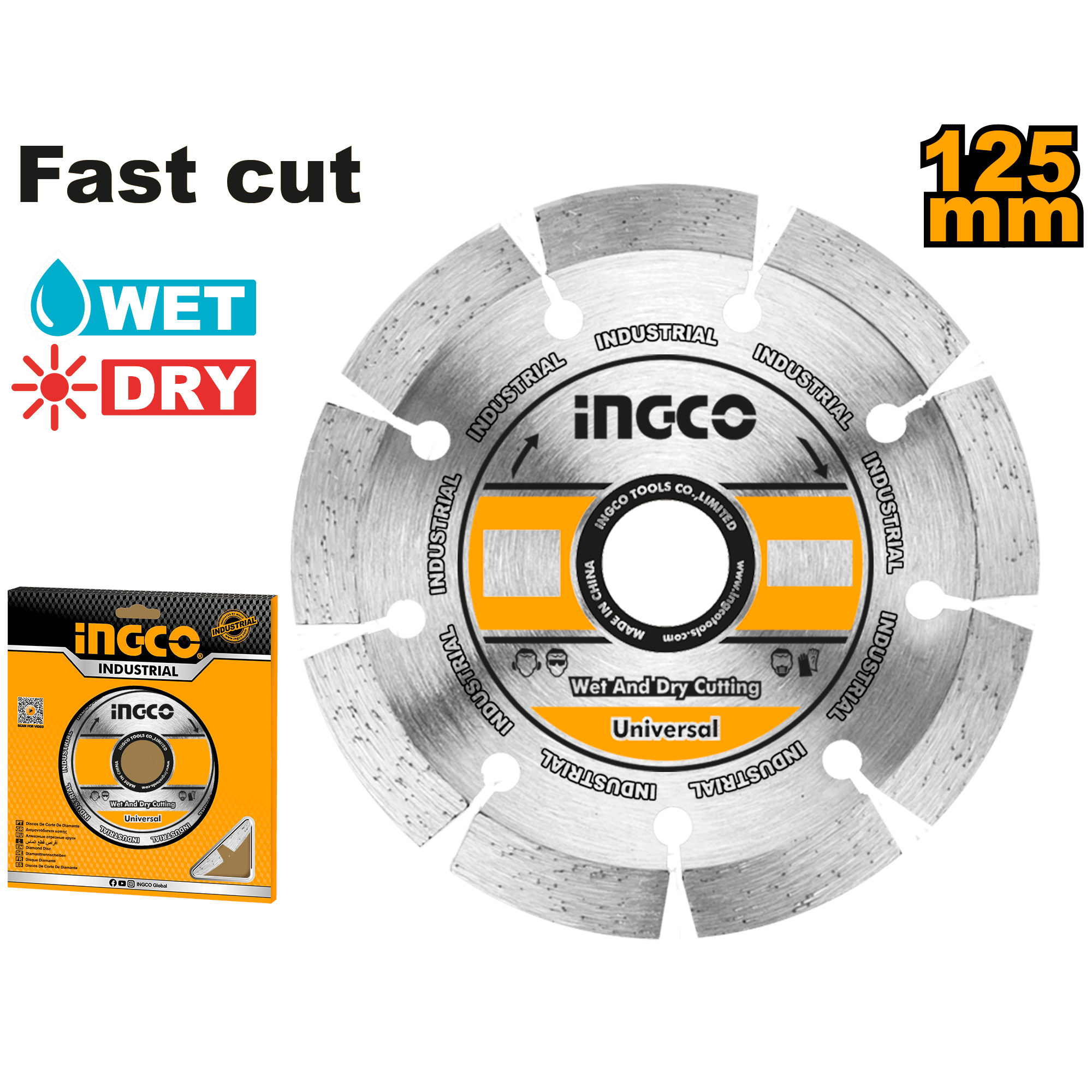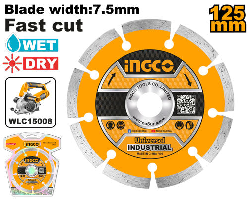 The INGCO DRY DIAMOND DISC (SKU: DMD011254) is a high-performance cutting disc designed for dry cutting of hard materials like concrete, stone, and tiles. With a 125mm diameter and durable diamond edge, it ensures fast, precise, and clean cuts, making it ideal for professionals and DIYers alike.