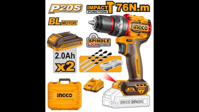 The INGCO Brushless Cordless Impact Drill CIDLI20768 is a high-performance power tool designed for professionals and DIY enthusiasts. Featuring a powerful 20V brushless motor, 76Nm torque, two 2.0Ah lithium-ion batteries, and a fast charger, this drill delivers superior efficiency, longer runtime, and enhanced durability for all your drilling and screwdriving needs.