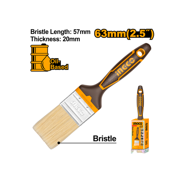 The INGCO Paint Brush CHPTB8725 is a high-quality, durable brush designed for precision painting. With its 2.5-inch width and synthetic bristles, it ensures smooth application and excellent paint retention, making it ideal for both DIY and professional use.