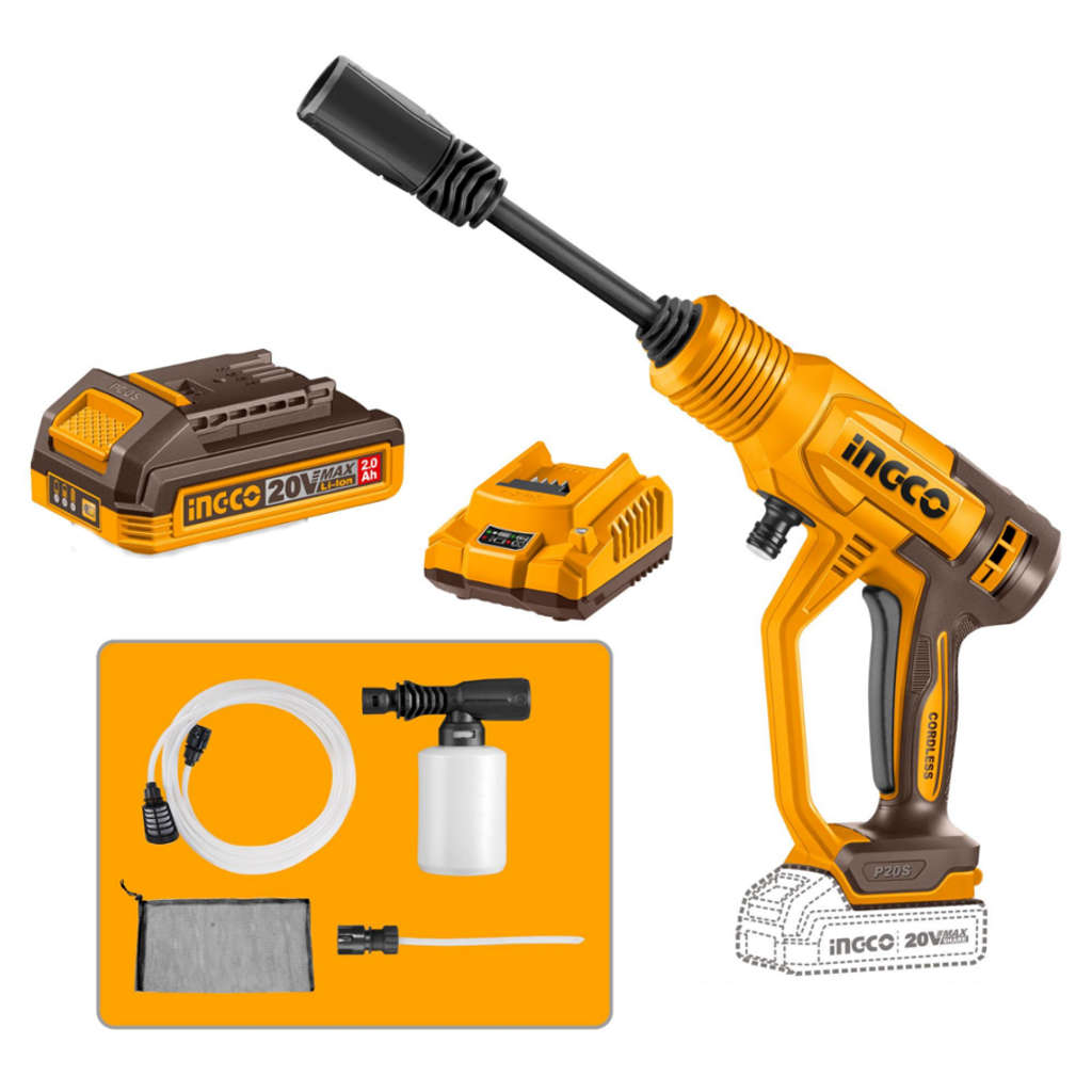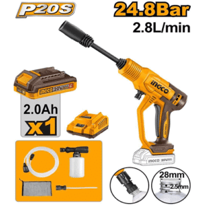 INGCO PRESSURE WASHER CORDLESS 1 BAT 2.0 AMP + CHARGER 24.8 BAR