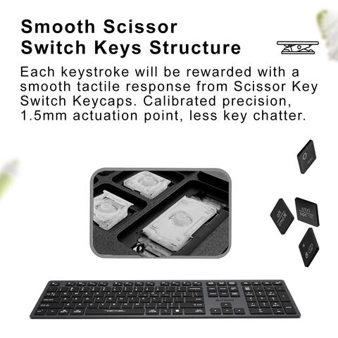 The A4Tech FBX50C is a versatile Bluetooth & 2.4G wireless keyboard featuring ultra-slim scissor switch keys for a smooth and quiet typing experience. Compatible with multiple devices and operating systems, it offers seamless switching between devices, long battery life, and a sleek, portable design—perfect for both work and travel.
