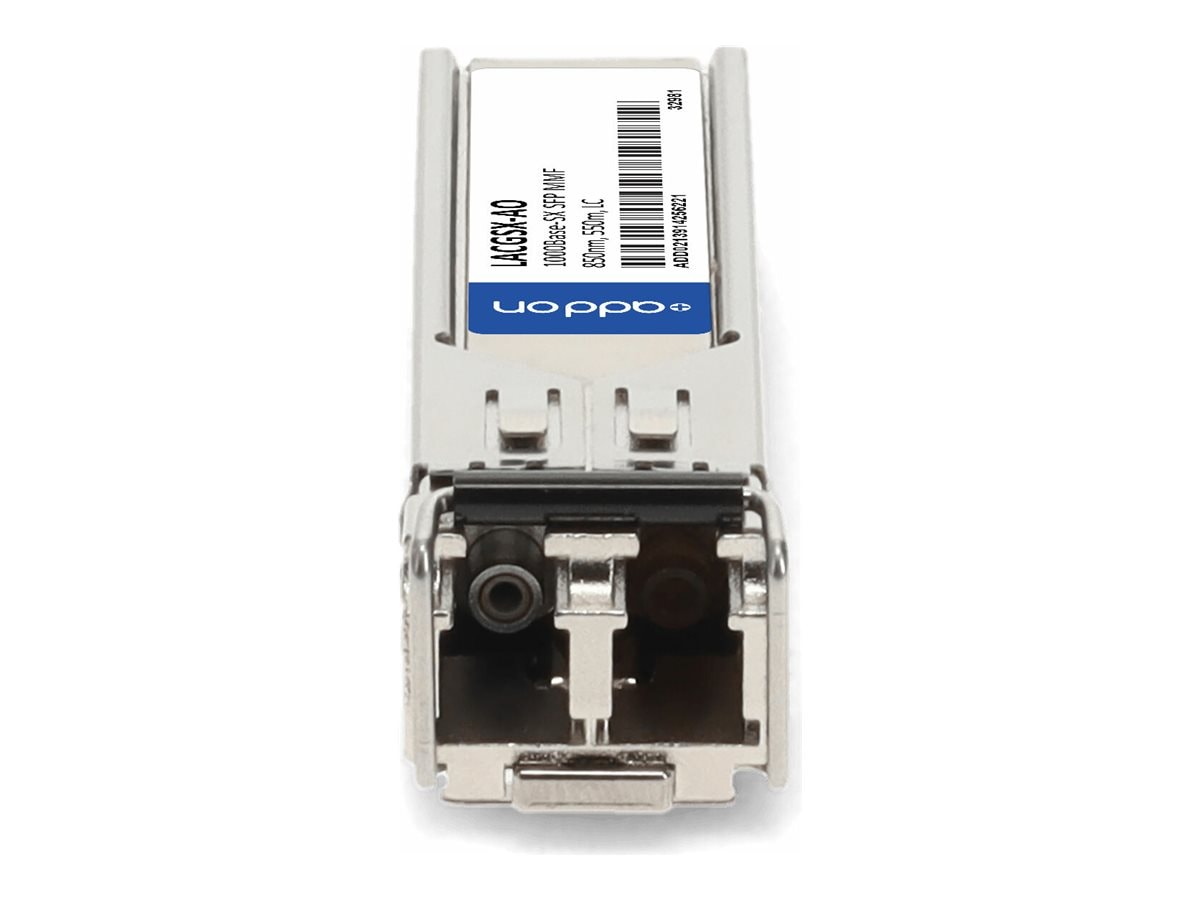 The LINKSYS LACGSX Compatible TAA Compliant 1000BASE-SX SFP Transceiver (SKU: LACGSX-AO) is a high-performance, cost-effective optical module designed for Gigabit Ethernet and Fibre Channel applications. It supports multi-mode fiber (MMF) with a transmission distance of up to 550 meters at 850nm wavelength, making it ideal for high-speed data communication in enterprise and data center networks.