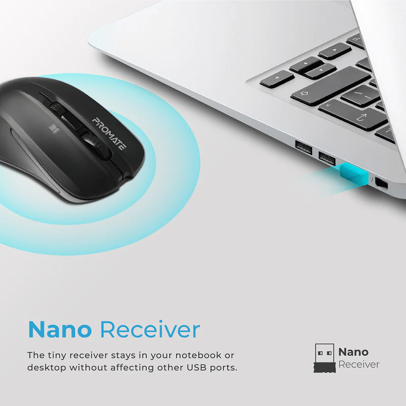 Promate Comfort Performance Wireless Ergonomic Mouse - Black