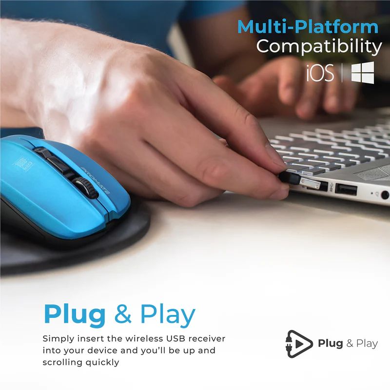 Promate Comfort Performance Wireless Ergonomic Mouse - Blue
