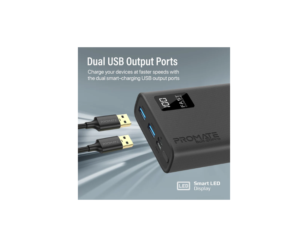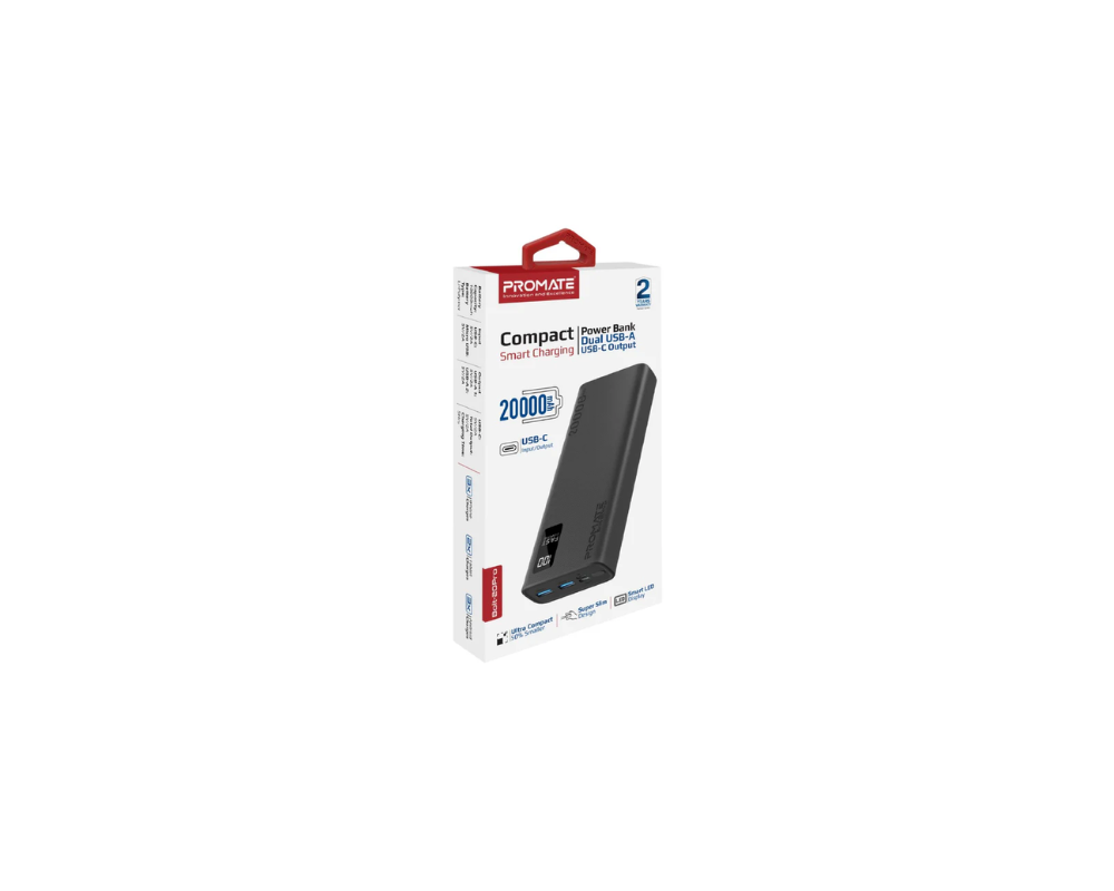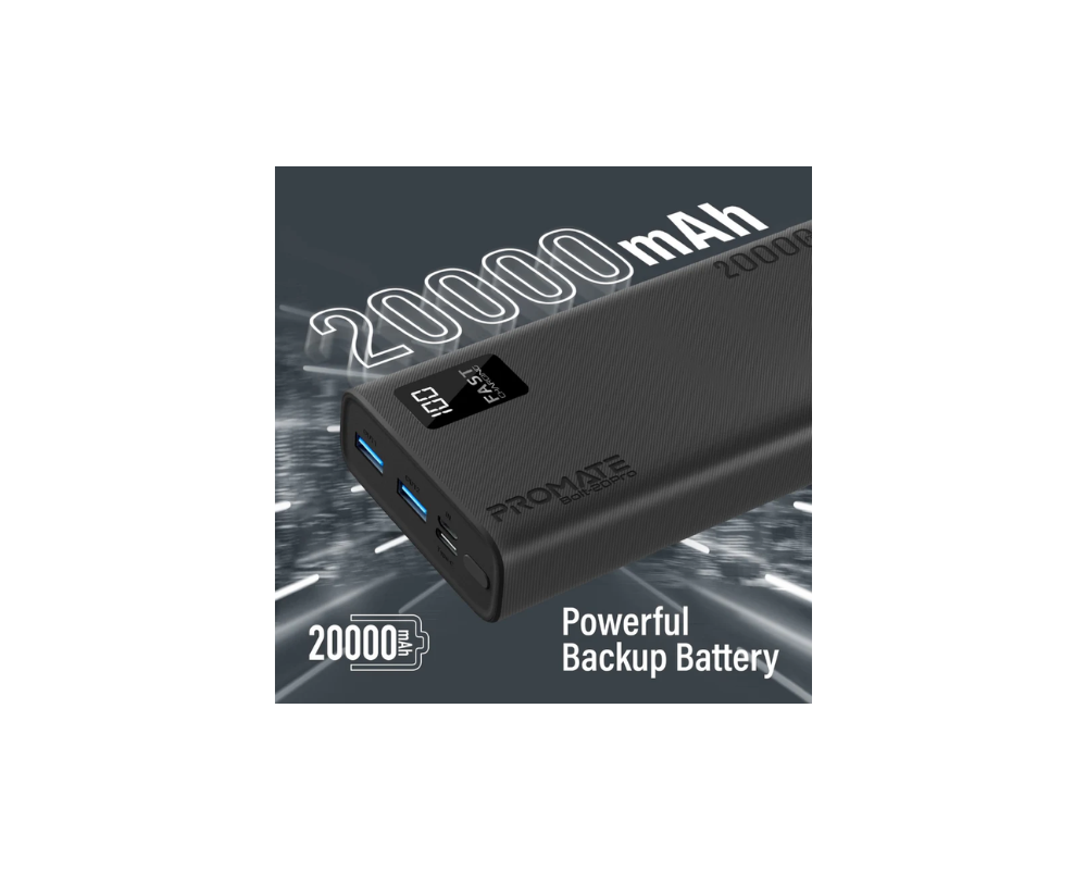 Promate iPhone 15 Portable Charger High-Capacity 20000Mah Slim Power Bank Dual USB Ports 10W Type-C Input/Output Port
