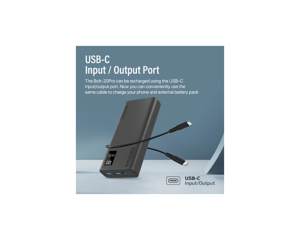Promate BOLT-20PRO.BLACK Mobile Charger - The Promate BOLT-20PRO.BLACK is a fast-charging mobile charger that supports 20W charging speed, allowing you to quickly power up your devices. Compact and lightweight, it’s perfect for on-the-go charging needs. Whether you're charging a smartphone, tablet, or other USB devices, the BOLT-20PRO delivers fast and efficient power delivery.