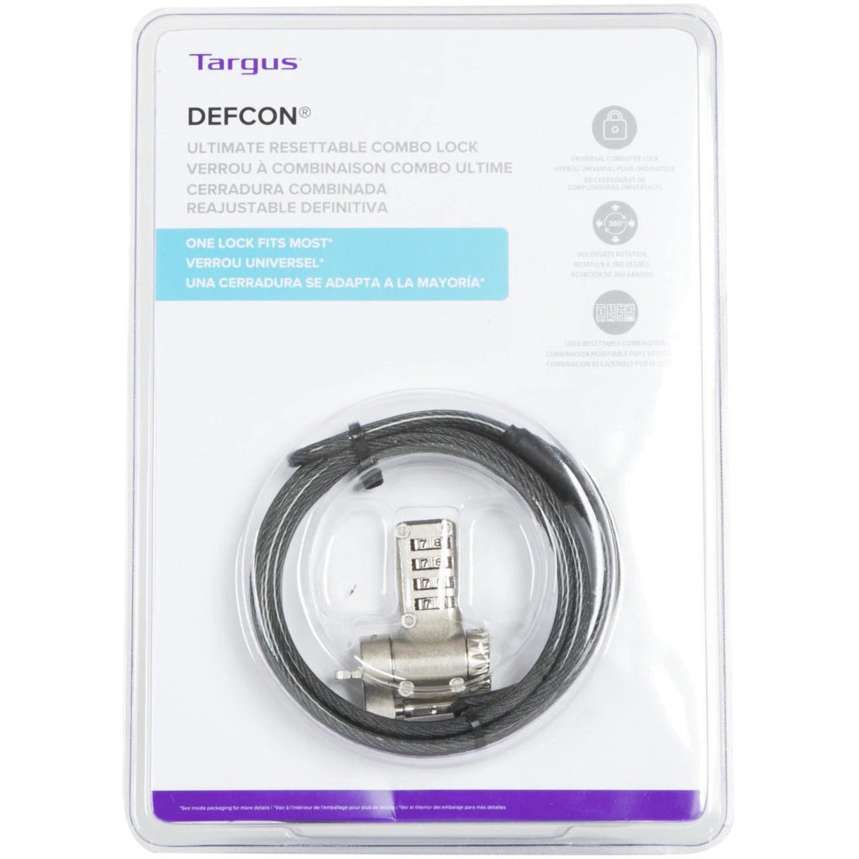The Targus® Ultimate Resettable Combo Lock (SKU: ASP96RGL) is a durable and secure 4-digit combination lock designed to protect laptops and other devices with a Kensington® T-bar™ slot. Featuring a resettable code and 360-degree rotating head, it offers flexibility, ease of use, and peace of mind for professionals on the go. En savoir plus