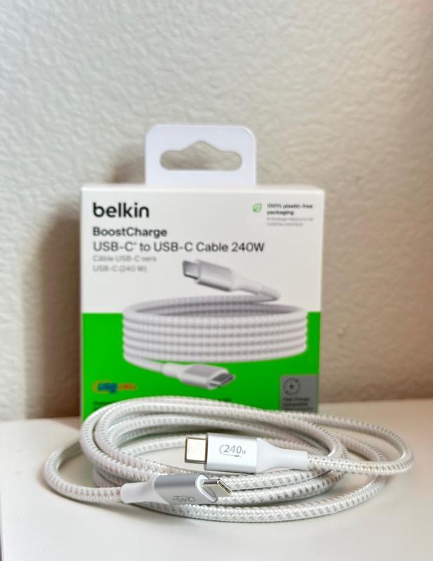 The BELKIN BOOSTCHARGE USB-C to USB-C Braided Cable (1M, White) delivers ultra-fast charging with up to 240W Power Delivery (48V/5A). Built with a durable braided exterior, this USB-C cable ensures reliable performance and long-lasting use—perfect for powering laptops, tablets, and smartphones quickly and safely. Read more