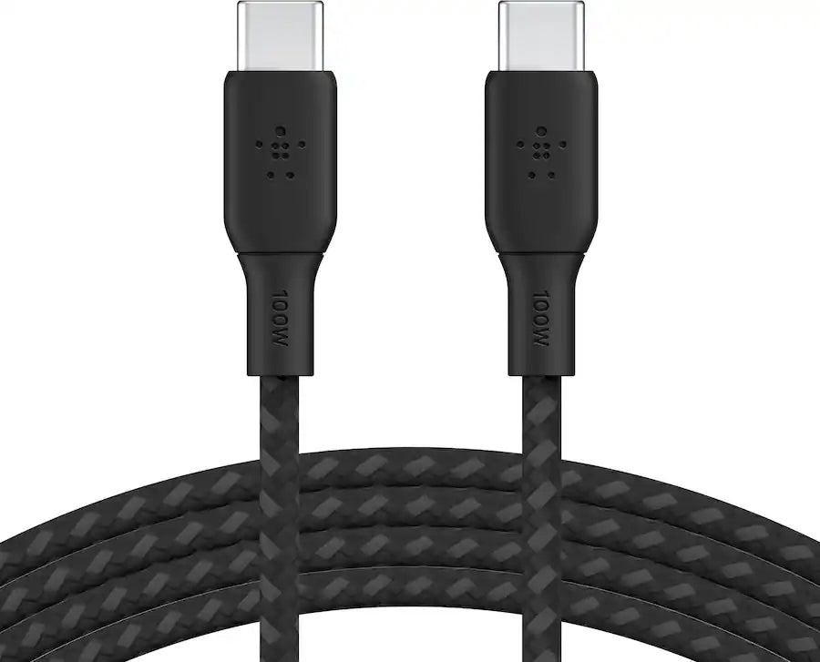 The Belkin Braided USB-C to USB-C 2.0 Cable (2m, Black) delivers fast charging up to 100W and reliable data transfer in a durable, tangle-resistant braided design. Ideal for powering laptops, tablets, and smartphones with USB-C ports.