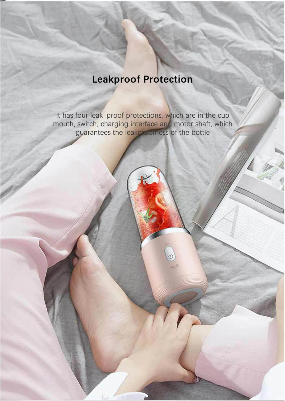 New juicing equipment: In the hot summer, iced juice is indispensable. The wireless portable juice machine has three upgrades in appearance, performance and battery life.\n\n\n\nUpgraded appearance: Designer custom color, Tunisian dark blue + rose gold\n\n\n\nPerformance upgrade: The new combination of juicing, the motor blade is very different\n\n\n\nBattery life upgrade: Refill at any time, refill 8 cups at a time\n\n\n\nSports / work / shopping / picnic, wireless and portable: Say goodbye to the shackles of the power cord, the wireless body is convenient to carry, walk with you everywhere, and you can squeeze sweet and sour juice at any time, awaken your vitality\n\n\n\nA new way to drink outdoors: For those of you who don t want to take the host to run around, you can take one step further. You can put the juice in the sports cup and take it away after finishing the juice indoors. It is light and not cumbersome, and you can drink it at any time. Read more