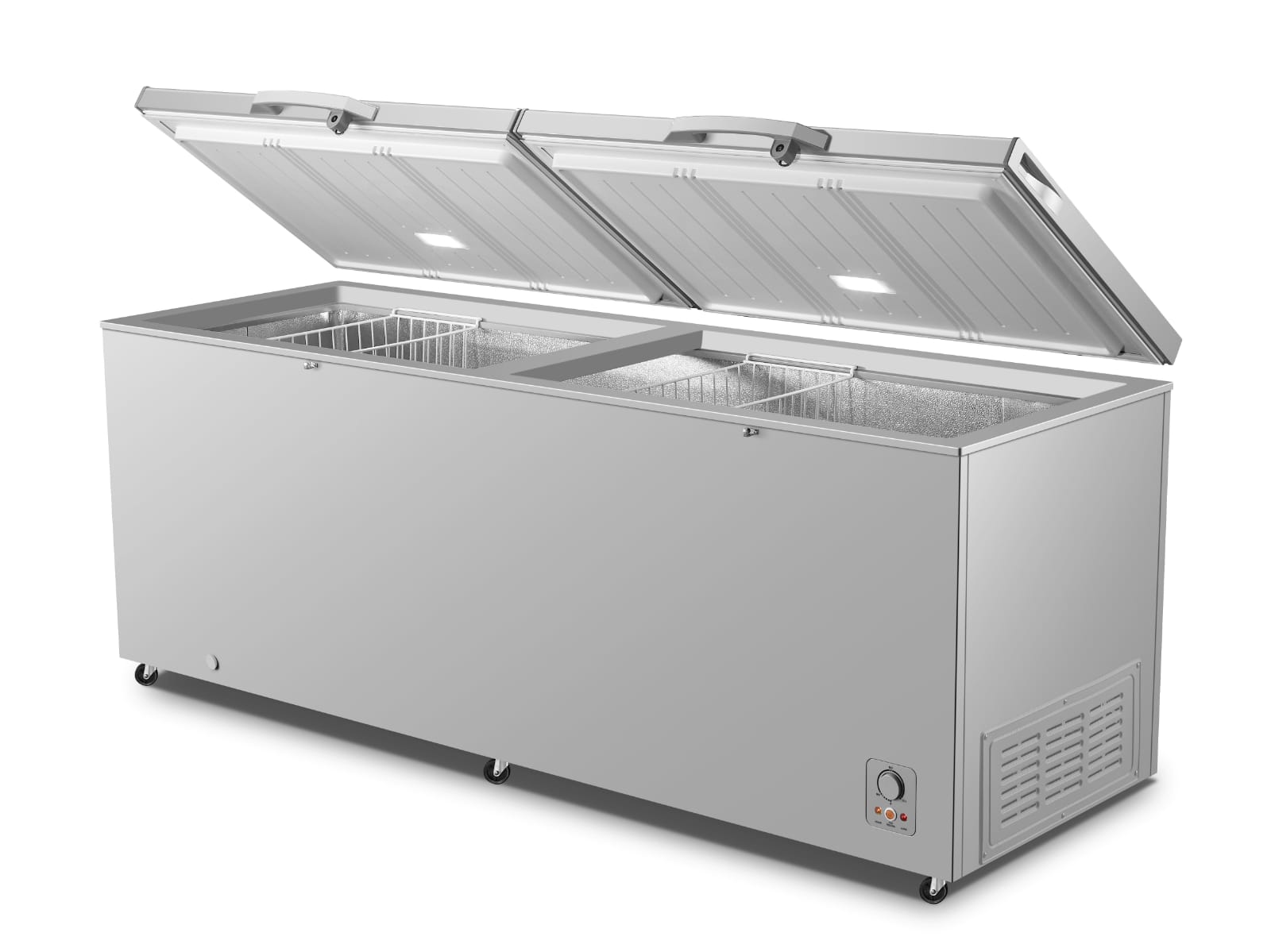 The Hisense H910CFS Chest Freezer offers a massive 701L capacity, perfect for large households or commercial use. Featuring adjustable temperature control, fast freeze function, and energy-efficient performance, this silver-finished freezer ensures your food stays fresh and organized with its spacious interior and convenient storage baskets.