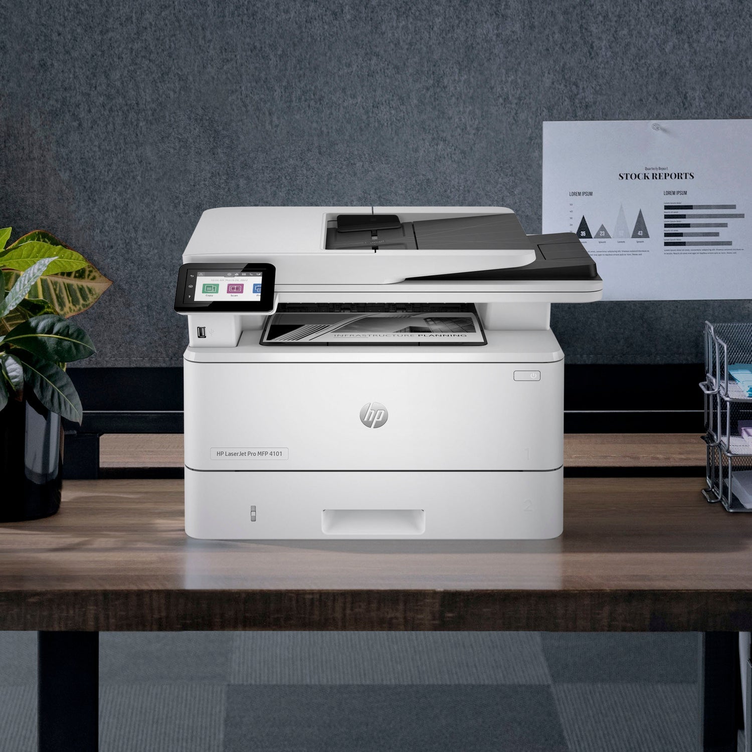 The HP LaserJet Pro MFP 4103dw (SKU: 2Z627A) is a high-performance monochrome multifunction printer designed for small to medium-sized businesses. It offers fast printing speeds up to 42 ppm, automatic two-sided printing, wireless connectivity, and robust security features—ideal for boosting productivity and efficiency.