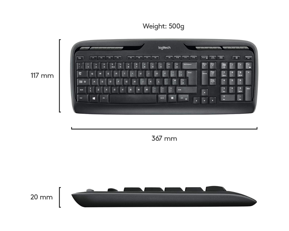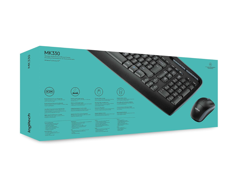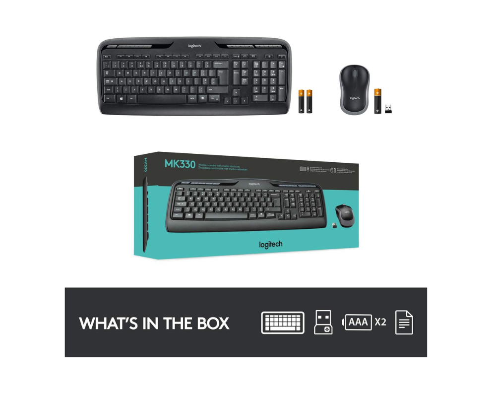 The Logitech MK330 Wireless Keyboard and Mouse Combo offers reliable, wireless performance with a comfortable full-size keyboard and a compact, ergonomic mouse. Its long battery life of up to 2 years for the keyboard and 12 months for the mouse ensures uninterrupted productivity. The combo features quiet, low-profile keys for smooth typing and a 2.4 GHz wireless connection, providing flexibility and ease for everyday computing tasks. Read more