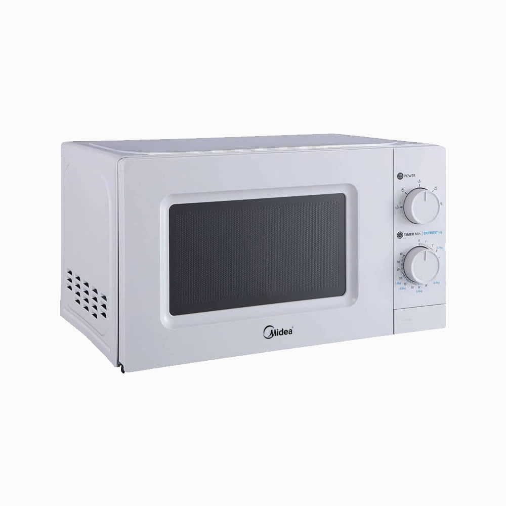 Introducing the MIDEA Microwave 20L in White. This compact and stylish microwave weighs 11.4kg and operates at 700W power. With manual control and a 255mm diameter turntable, it offers simple defrosting and cooking functions. The 1~35mins cooking timer and 5 power levels provide versatility. Enhance your kitchen with this high-efficiency microwave. Shop now! Read more