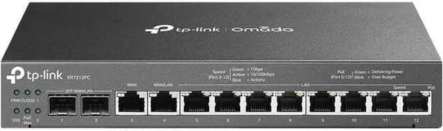 The TP-Link Omada ER7212PC is a powerful 3-in-1 Gigabit VPN Router with integrated PoE+ switch and Omada SDN controller. Designed for small to medium-sized businesses, it combines routing, PoE+ power supply, and centralized network management in one compact device. Key features include 8× PoE+ ports, VPN support, and seamless integration with Omada's software-defined networking platform. Read more