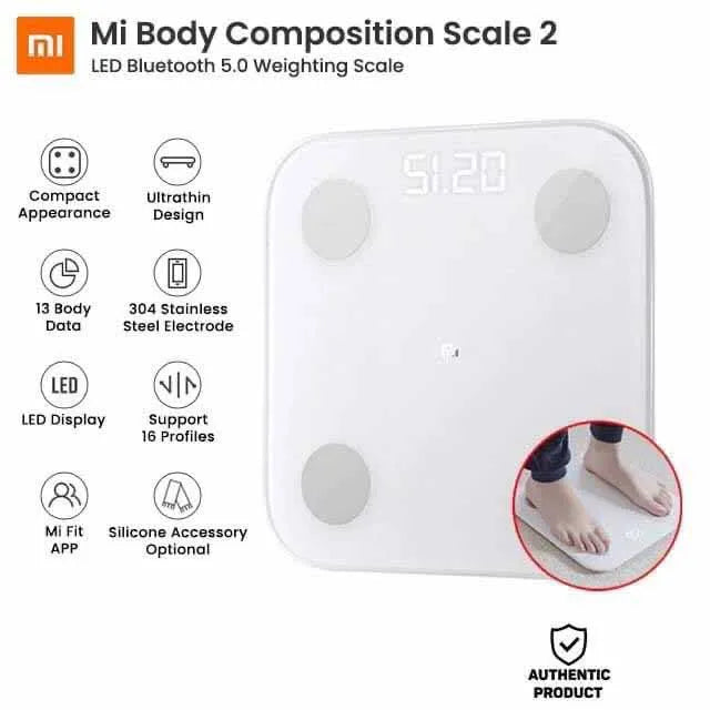 The Xiaomi Body Composition Scale 2 (SKU MI-BCS-2) is a smart fitness device designed to help you track your health metrics with precision. With its advanced BIA technology, it measures 13 key body metrics, including weight, BMI, muscle mass, and more. The sleek design and Bluetooth connectivity make it a perfect addition to any modern home. Read more